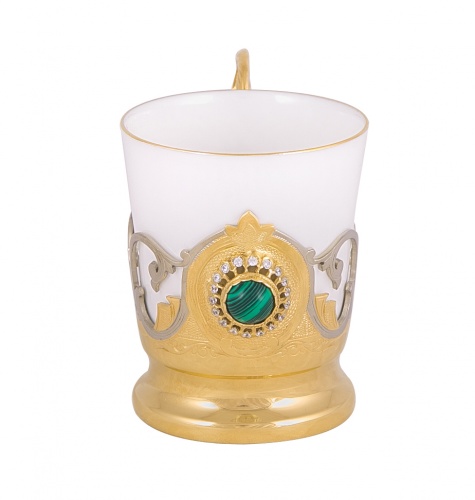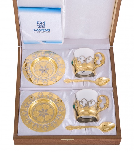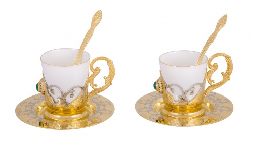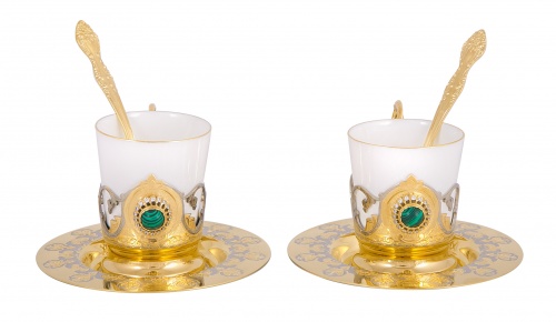 Набор кофейный малахит (2 тарели, 2 чашки, 2 ложки)