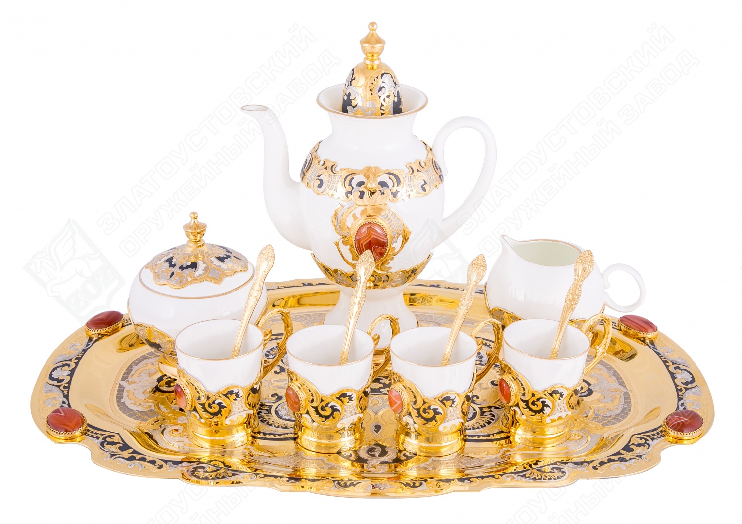 Набор кофейный монплезир (поднос, кофейник, сливочник, сахарница, 4 чашки)