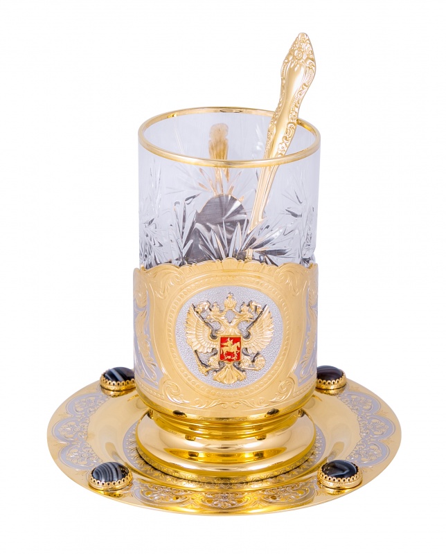 Набор чайный "гербовый" (тарель 140, подстаканник, ложка)