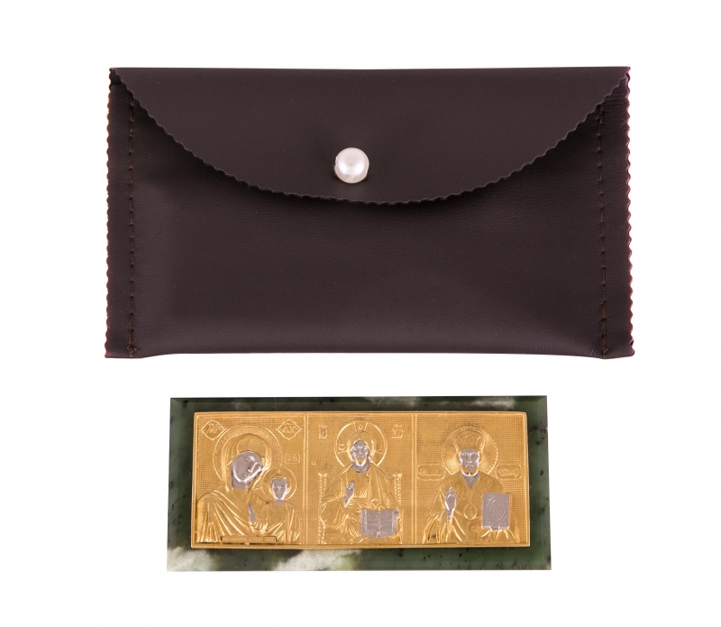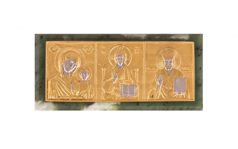 Автооберег православный (нефрит). Материал: латунь, нефрит. Покрытие: золотом 999,9; никелем. Прекрасным подарком для тех, кто верует, наверняка станет автооберег «Православный». Здесь нет ничего лишнего, только нефритовая подложка и латунная гравюра ручной работы, покрытая золотом и никелем. Сувенир можно установить прямо на торпеде автомобиля или спрятать в более укромное место. В любом случае, такой презент, подаренный от чистого сердца, всегда будет оберегать в пути! Размеры: ширина 145 мм. высота 75 мм. Покрытие Гальванический метод