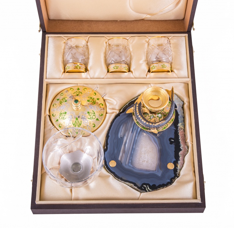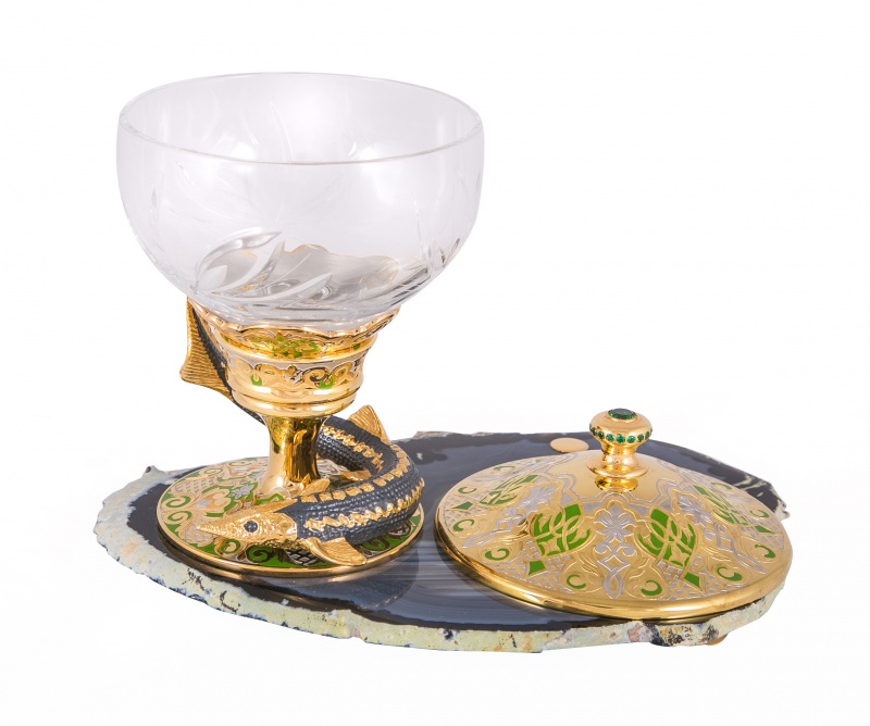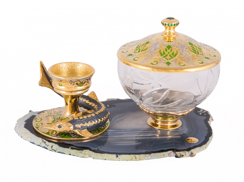 Икорница русский осетр (икорница, 3 стопки, агат)