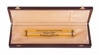 Сувенир капсула времени. Материал: латунь. Покрытие: золотом 999,9; никелем. Техника исполнения: токарные и слесарные работы, рисовка кистью на металле, многоступенчатая гравировка иглой по лаку, травление, ручная подрезка, полировка. Порой так хочется остановить мгновение, оставить в памяти навсегда дорогие сердцу моменты. Это стало возможным благодаря прекрасному сувениру – «Капсула времени». Достаточно только написать письмо себе в будущее и заключить его в металлический сосуд. А может, родители желают написать наставление в будущее своим детям или внукам? По желанию заказчика мастер нанесет гравировку, когда же капсула может быть открыта. Размеры: Длина - 260 мм. диаметр - 33 мм. Покрытие Гальванический метод