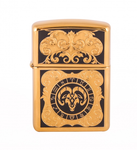 Зажигалка овен (zippo). Материал: латунь, механизм "ZIPPO". Покрытие: золотом 999,9; никелем. Техника исполнения: токарные и слесарные работы, рисовка кистью на металле, многоступенчатая гравировка иглой по лаку, травление, ручная подрезка, полировка. Переучивать курильщика – дело неблагодарное, да и бесполезное. Другое дело – подарить ему памятный сувенир, который будет постоянно напоминать о дарителе. Латунная зажигалка «Овен» - это всего лишь одна из интерпретаций знаков гороскопа. Можно изобразить любой из них, в зависимости от даты рождения получателя. Такая зажигалка – это не просто красивый корпус, но и надежный механизм ZIPPO. При необходимости ее можно заправлять неограниченное количество раз и постоянно носить с собой! Размеры: высота - 55 мм. ширина - 40 мм.