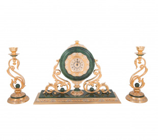 Каминный набор атриум (часы, 2 подсвечника, нефрит).