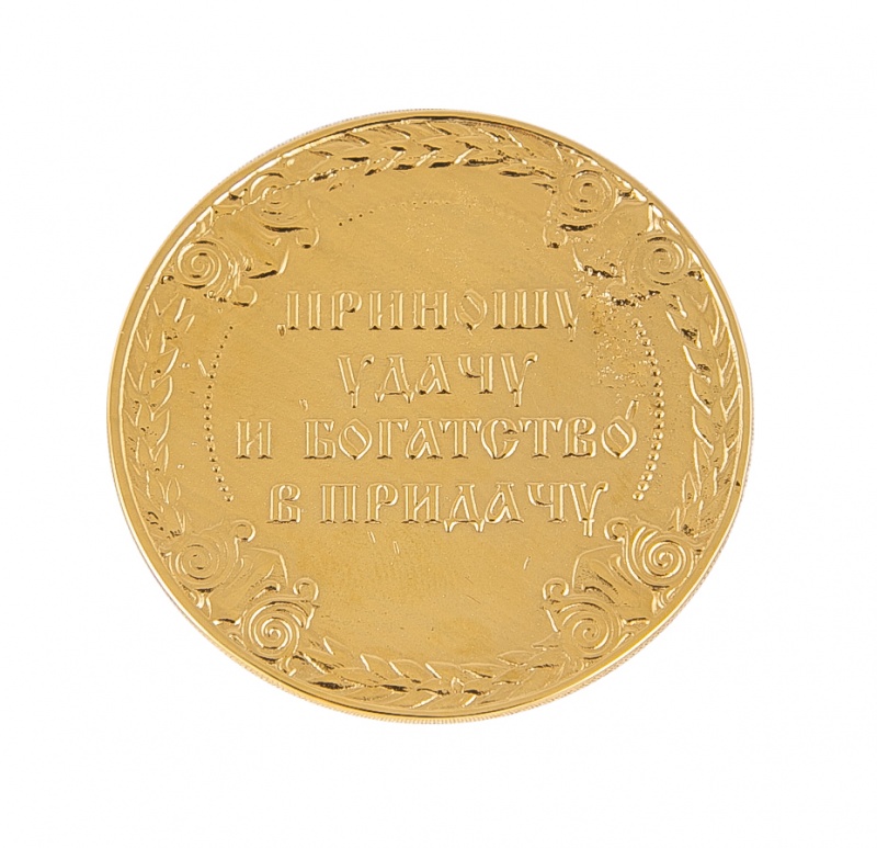 Сувенир монета счастливый серебряник. Материал: латунь. Покрытие: золотом 999,9; никелем. Техника исполнения: 3D-моделирование станочной обработки, ювелирное дело. Размеры: Диаметр 32 мм. Покрытие Гальванический метод