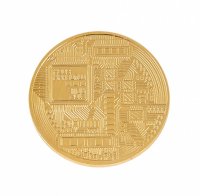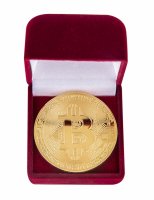 Сувенир монета золотой биткоин. Материал: латунь. Покрытие: золотом 999,9; никелем. Техника исполнения: 3D-моделирование станочной обработки, ювелирное дело. Размеры: Диаметр 32 мм. Покрытие Гальванический метод
