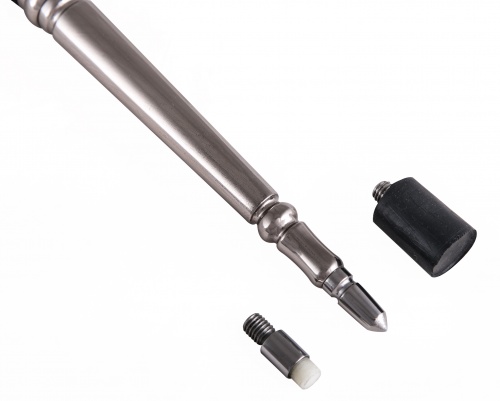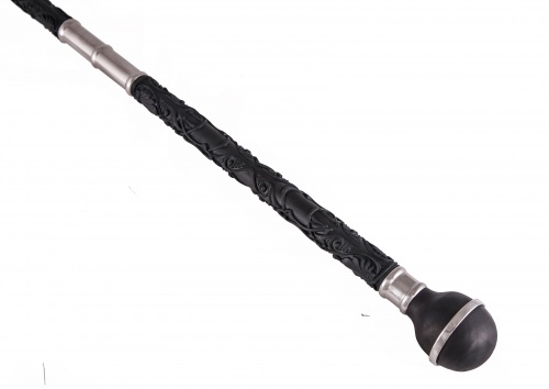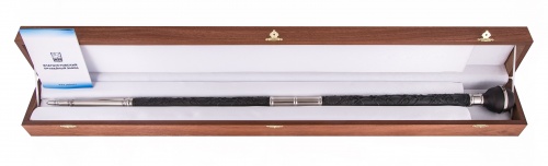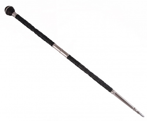 Трость дворянин (ценные породы дерева, титан). Материал: титановый вставки; кожа; ценные породы дерева. Техника исполнения: токарные и слесарные работы, полировка. Для кого-то трость – это необходимость, для других – просто стильный аксессуар. Вне зависимости от потребностей покупателя, предложение «Дворянин» станет достойным приобретением. Что примечательно, ходить с такой тростью сможет и мужчина, и женщина. Хотя, по желанию заказчика или заказчицы цветовая гамма может быть изменена. Что представляет собой эта трость? Большая часть корпуса выполняется из ценных пород дерева и кожи, что смотрится очень дорого и необычно. Дабы усилить конструкцию, у основания и на конце сделаны титановые вставки, серый цвет которых идеально гармонирует с черным основанием. Общая длина: 920 мм