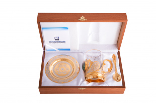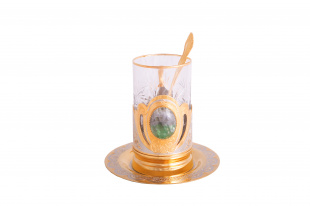Набор чайный флюорит (тарель, подстаканник, ложка)