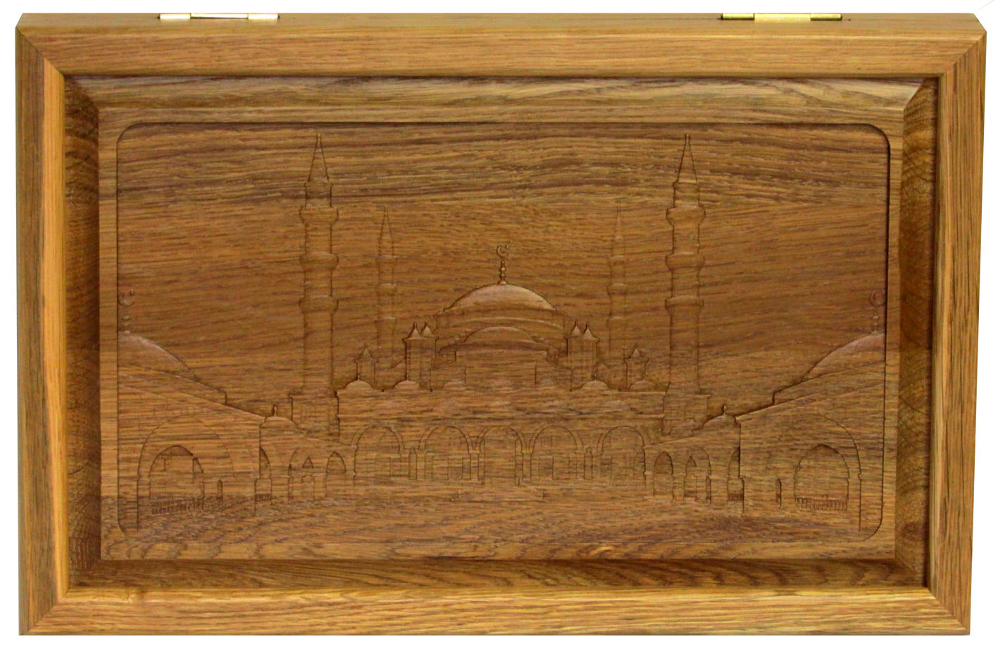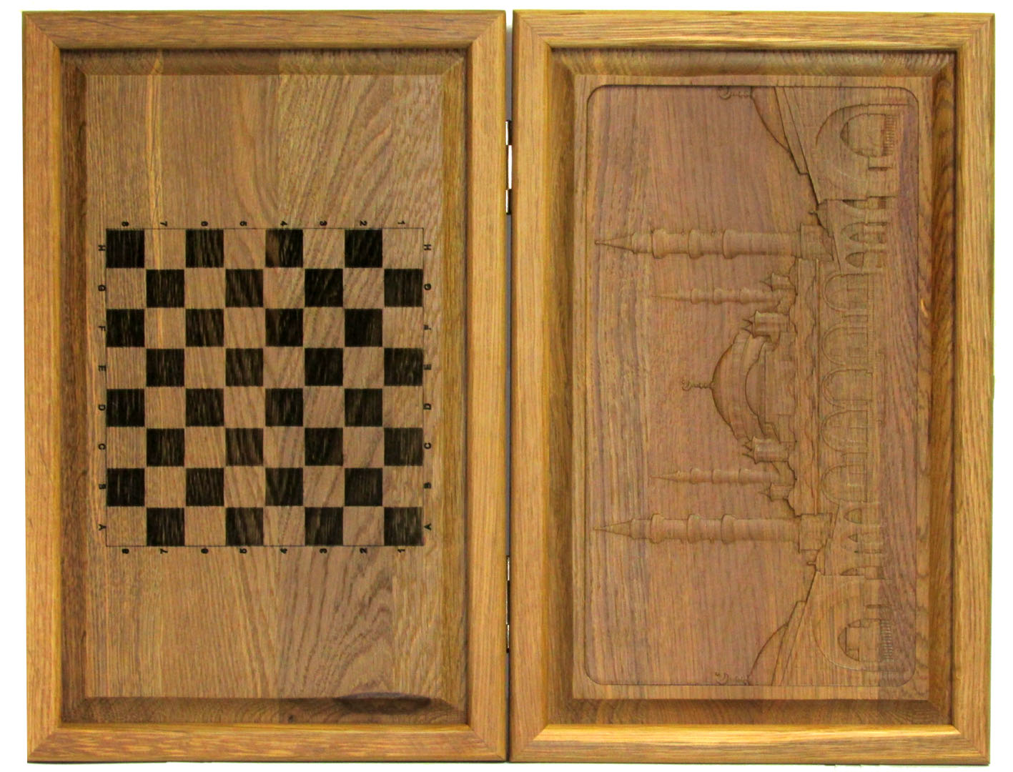 Резные объемные нарды+шашки дорожного размера из массива мореного дуба &qu. Артикул: 10-14 Наименование: Резные объемные нарды+шашки дорожного размера из массива мореного дуба Мечеть Султанахмет Размер: 36 х 46 см Описание: Материал: Мореный дуб Технология: Резьба по массивуОдна из лучших досок дорожного размера. Размер не самый маленький (встречаются нарды и меньших размеров), однако нашей целью было создать нарды минимального из УДОБНЫХ размеров. Эта доска соответствует всем основным запросам любителей игры в нарды: - Деревянные фишки из массива березы с углублением по центру легко перемещаются пальцами. Диаметр фишки 19 мм - Возможность выставить все фишки вдоль края поля, что важно при игре в длинные нарды - Удобные ячейки из массива мореного дуба - Ложемент для хранения фишек и костей по краю поля С внешней стороны на лицевой филенке вырезана знаменитая Мечеть Султанахмет иначе называемая Голубая Мечеть. На оборотной филенке вырезана доска для игры в шашки. Упаковка: транспортная картонная коробка. ВАЖНО: Нарды будут иметь такой же резной рисунок, у них будет такая же фурнитура и точно так же будут выделены стрелки на поле, НО рисунок дерева неповторим. Поэтому Вы не сможете получить точно такие же нарды, как на сайте. Для того, чтобы игра в нарды доставила Вам еще большее удовольствие, предлагаем заменить фишки штатной комплектации на изысканные фишки из экзотического самшита и золотистого розового дерева, диаметром 19 мм, которые помогут дополнить эту игру еще и замечательным звучанием драгоценных пород деревьев.