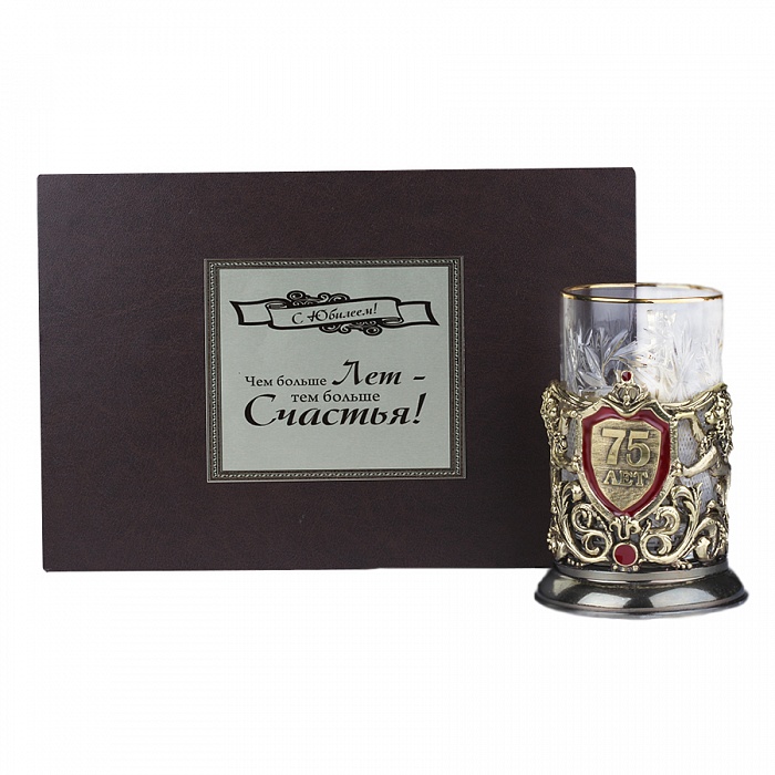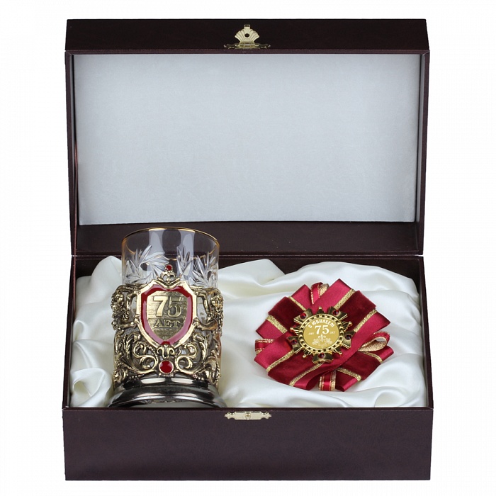 Подарочный набор: подстаканник литье с юбилеем 75 лет и орден, в шкатулке