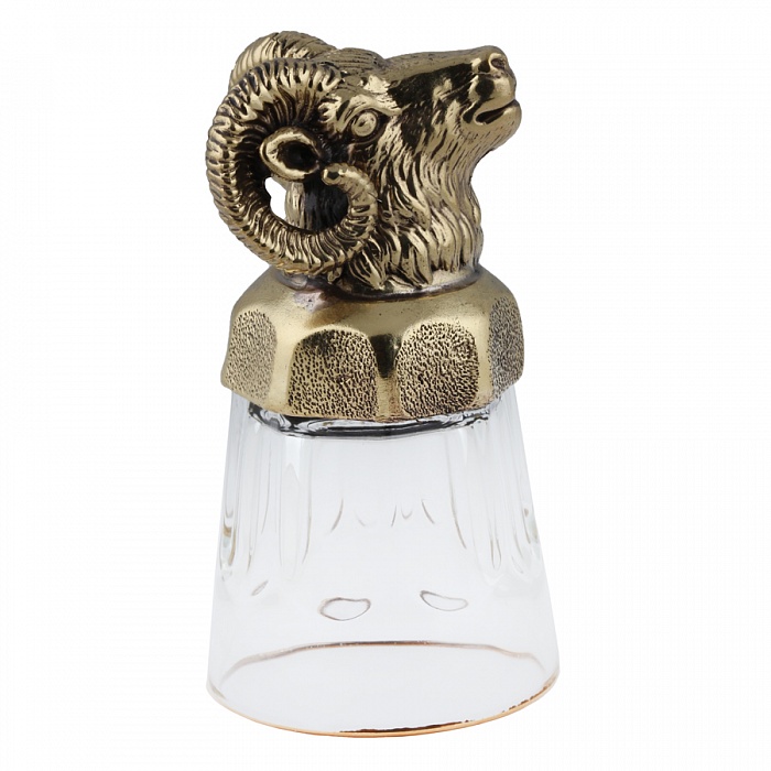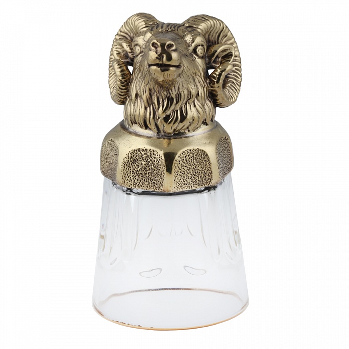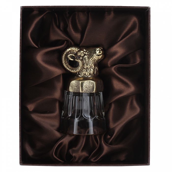 Стопка-перевертыш баран с накладкой особенности национальной…в пейсли. Код товара: 1005080 Основной материал: Стекло, латунь Размер: упаковка 14,5 х 17,5 х 10,5 см,высота стопки 10 см, объем 50 мл Детали: В подарочной коробке с шёлковым ложементом