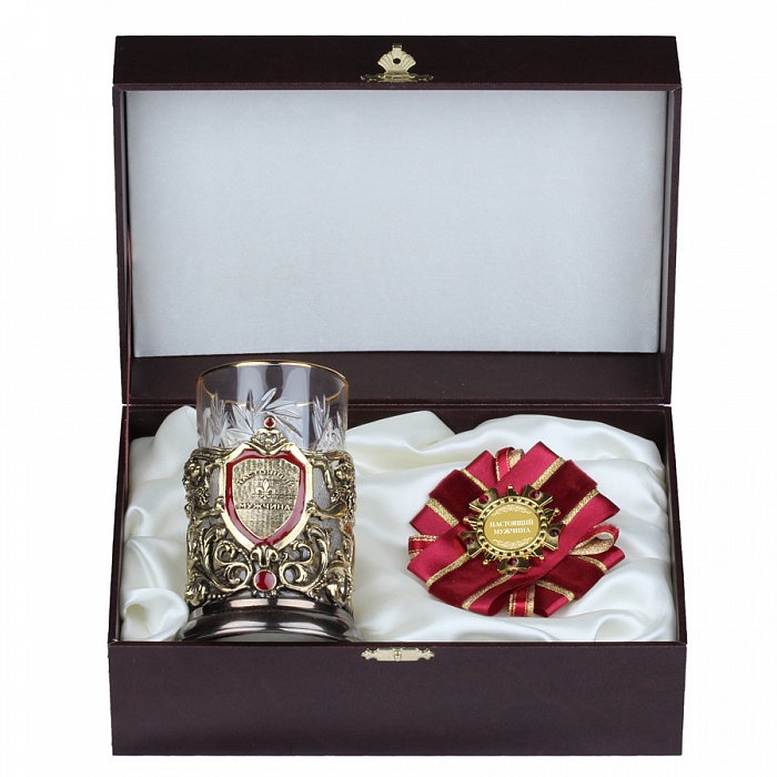 Подарочный набор: подстаканник литье настоящий мужчина и орден,в шкатулке