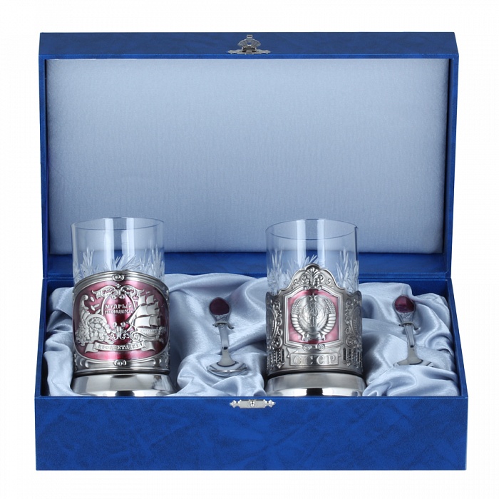 Чайная пара: подстаканник мудрый руководитель и подстаканник герб ссср, ни