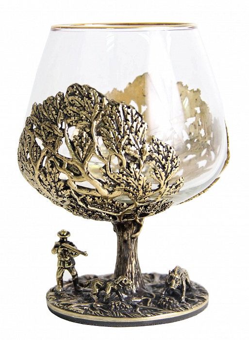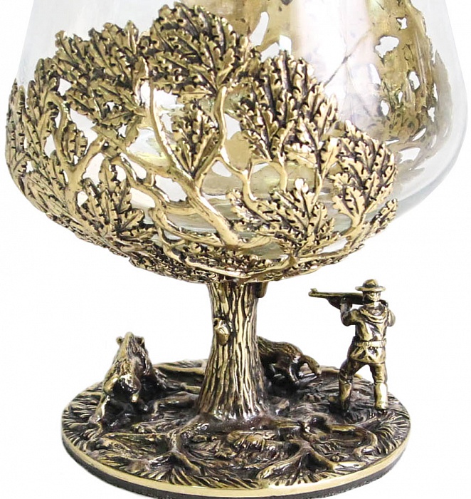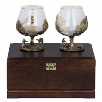 Набор бокалов литье охота на лося и охота на кабана в деревянной шкатулке