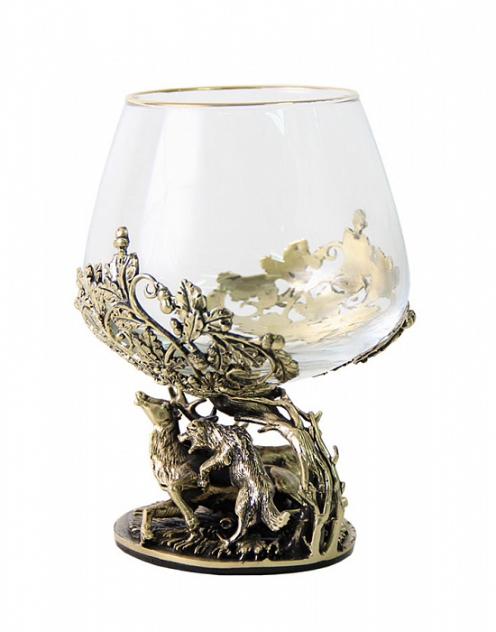 Набор бокалов литье охота на оленя и охота на вепря в деревянной шкатулке