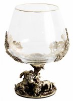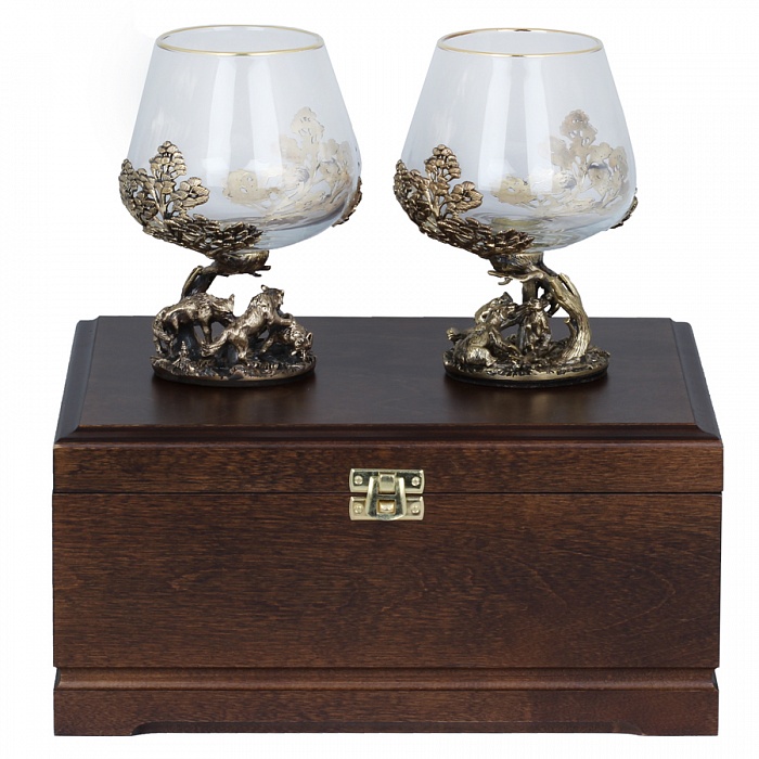 Набор бокалов литье волки и три медведя в деревянной шкатулке