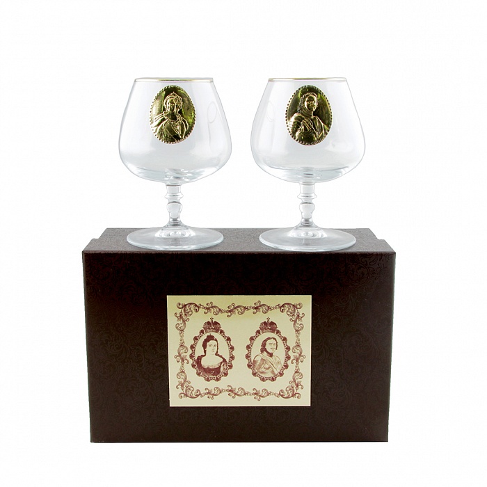 Набор царский-5: два бокала для коньяка 420 мл с зол. отводкой, декоратив