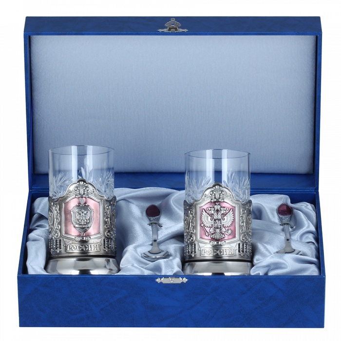 Чайная пара: подстаканник фсб и подстаканник герб, никель, эмаль, накл. ме