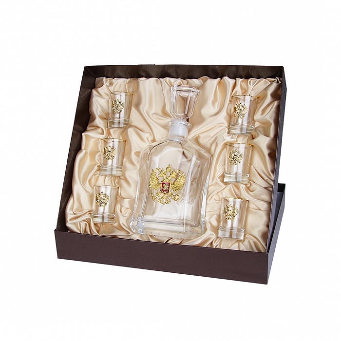 Набор герб россии-1: штоф капитол, накладка герб рф латунь+ 6 рюмок