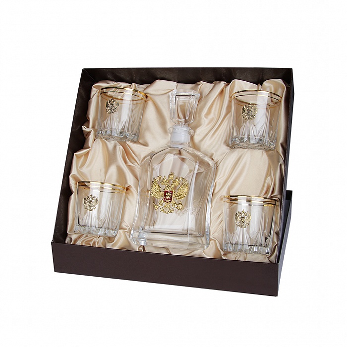 Набор герб россии-2: штоф капитол и 4 бокала для виски, накладка герб рф л