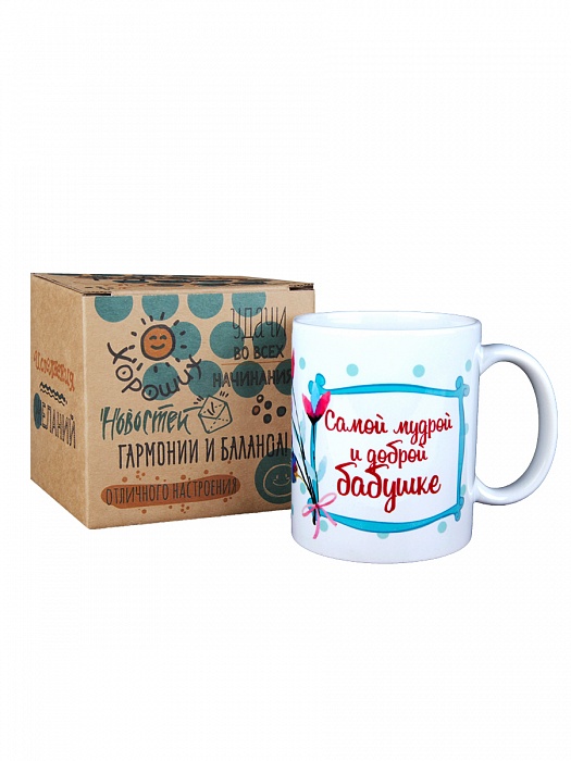 Подарочная кружка самой мудрой и доброй бабушке - 1 в подарочной картонной