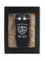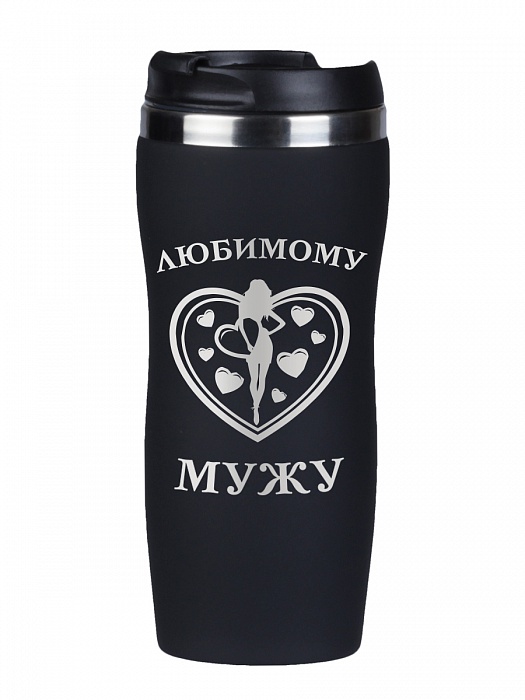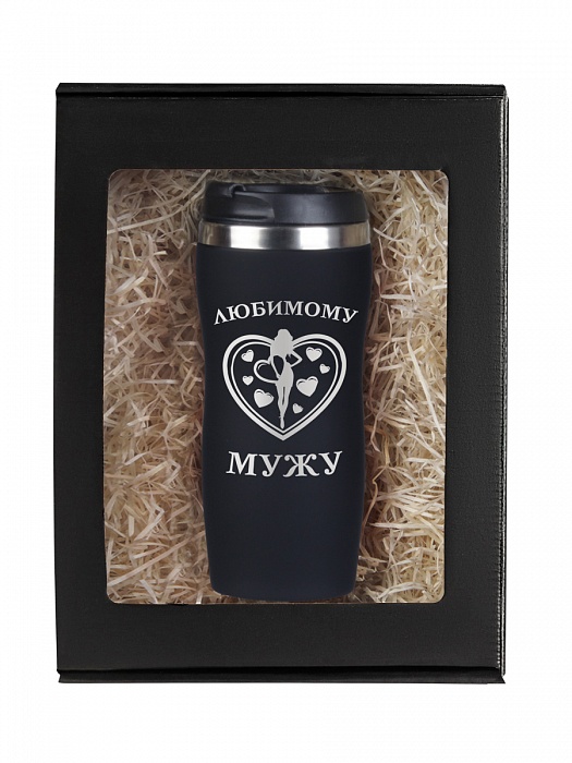 Термокружка любимому мужу черная в подарочной упаковке. Код товара: 10051446 Цвет: Черный Основной материал: Нержавеющая сталь/СофтТач Размер: Объем 350 мл