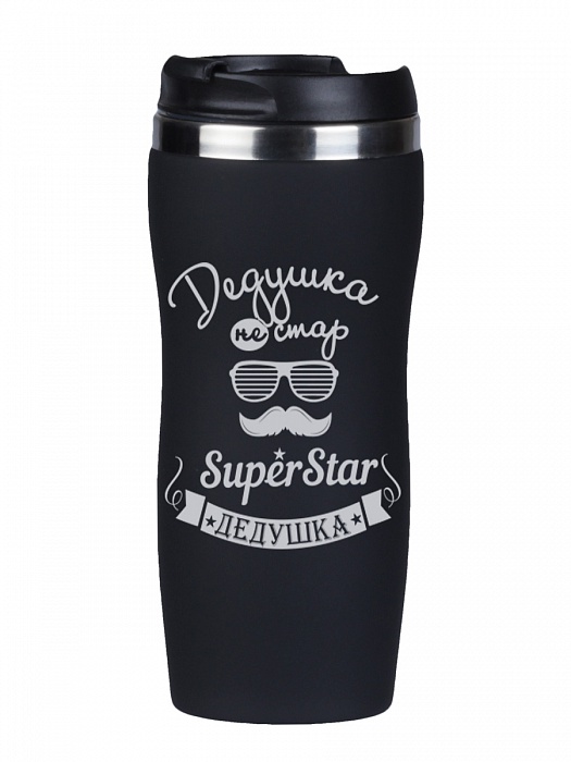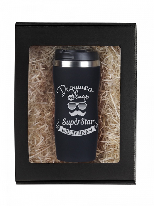 Термокружка дедушка не стар, дедушка Superstar черная в подарочной упаковк