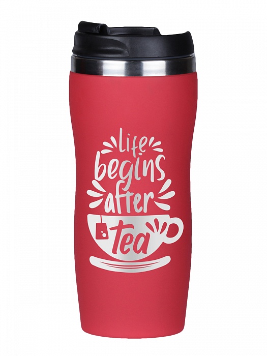 Термокружка life begins after tea красная в подарочной упаковке. Код товара: 10051452 Цвет: Красный Основной материал: Нержавеющая сталь/СофтТач Размер: Объем 350 мл
