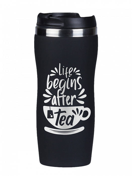 Термокружка life begins after tea черная в подарочной упаковке. Код товара: 10051464 Цвет: Черный Основной материал: Нержавеющая сталь/СофтТач Размер: Объем 350 мл