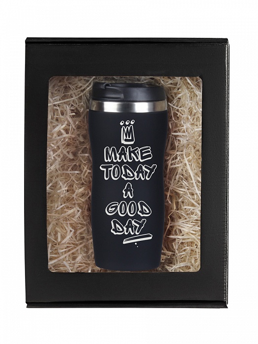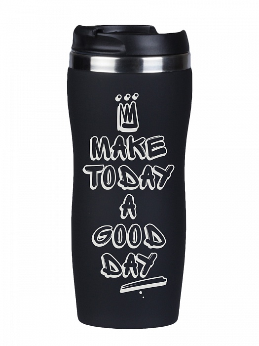 Термокружка make today...(граффити с короной) черная в подарочной упаковке. Код товара: 10051466 Цвет: Черный Основной материал: Нержавеющая сталь/СофтТач Размер: Объем 350 мл