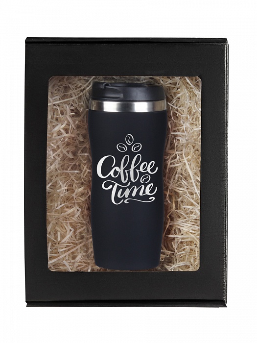 Термокружка coffee time черная в подарочной упаковке. Код товара: 10051469 Цвет: Черный Основной материал: Нержавеющая сталь/СофтТач Размер: Объем 350 мл