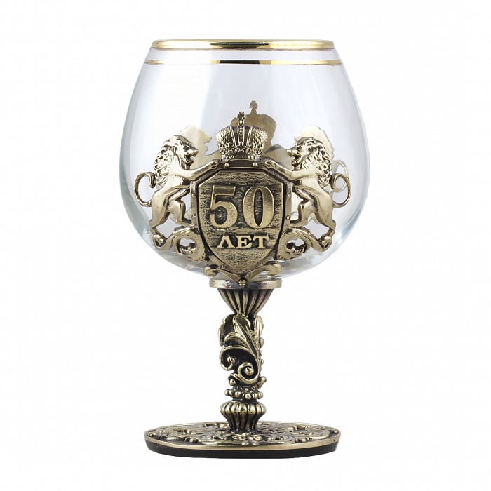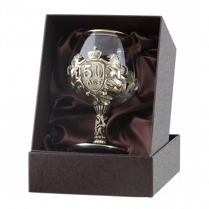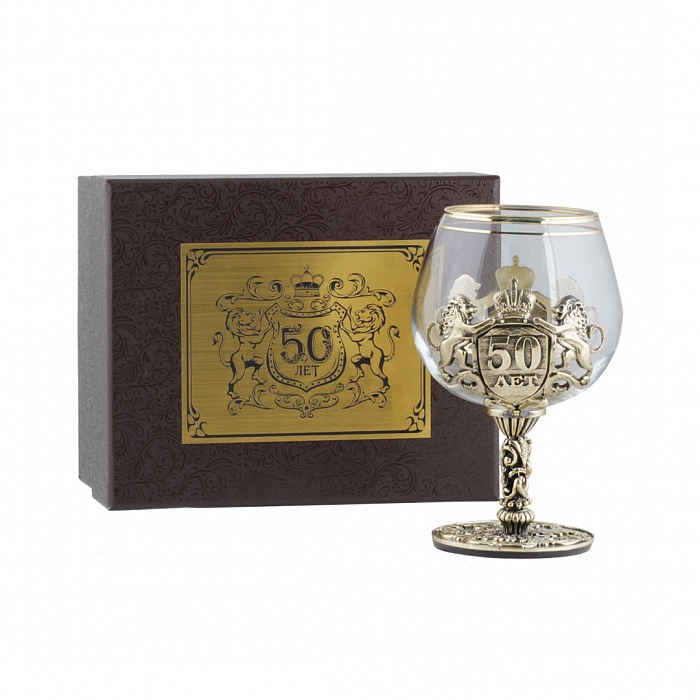 Бокал для коньяка настоящий мужчина. с юбилеем! 50 лет в картонной коробк