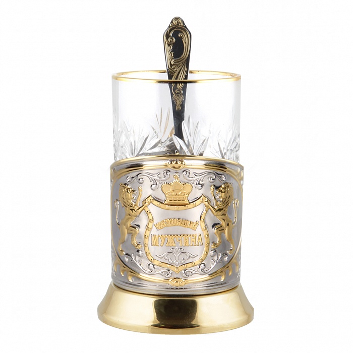 Подстаканник подарочный с позолочением настоящий мужчина в коробке