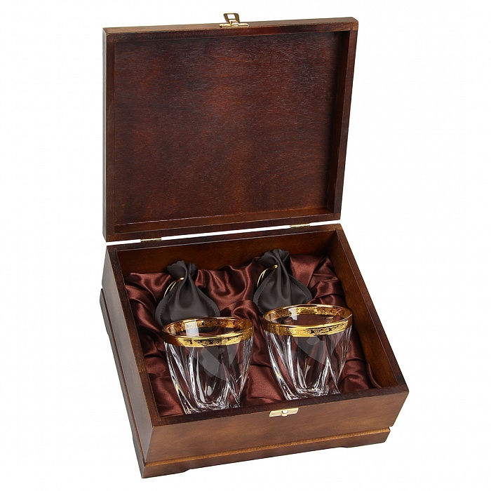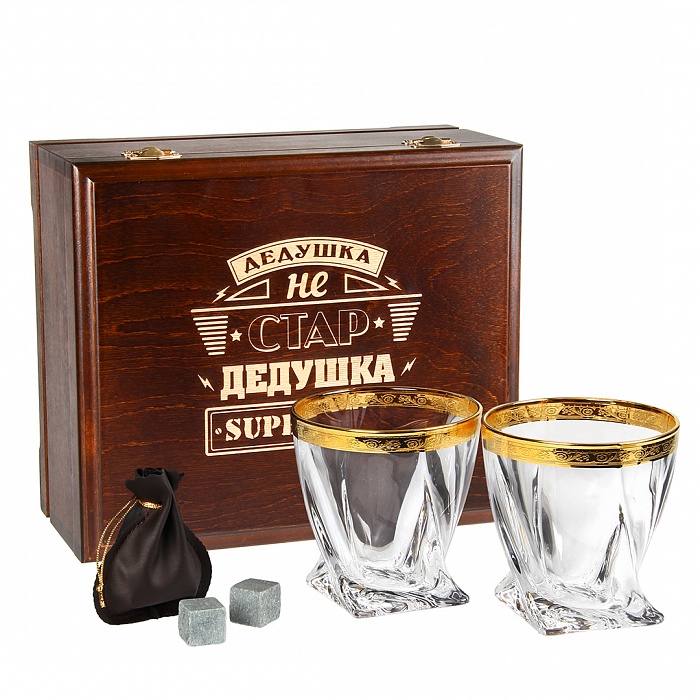 Набор из двух бокалов для виски дедушка не стар...в деревянном футляре