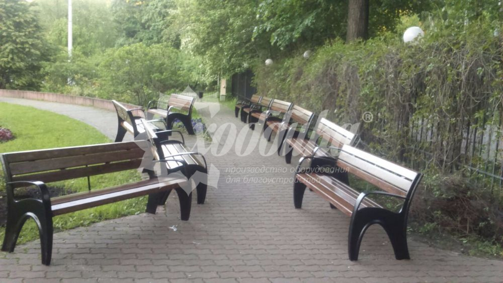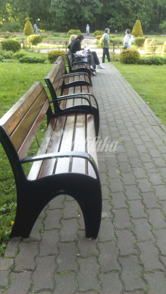 Скамейка чугунная «волна» 1,8 м. Подробные характеристики Скамейка поставляется в разобранном виде! Лиственница лучше чем сосна! В производстве чугунных скамеек мы используем лиственницу. Материалы: Опоры: Чугунное художественное литьё. Покрыты порошковой полимерной краской. Возможность выбора цвета по каталогу RAL. Стандартный цвет (по умолчанию) - черный. Сиденье и спинка: Брус - ангарская сосна/лиственница (вариант исполнения: композитные материалы/термодерево). Огнебиозащитные пропитки + тонировочный состав с антисептиком + два слоя яхтного лака с промежуточным шлифованием. Возможность выбора цвета из палитры. Также предусмотрена возможность покрытия бруса маслом для наружных работ. Фурнитура: Оцинкованная. Стандартный цвет (по умолчанию) - серебристый. Возможность использования потайной/скрытой фурнитуры. Технические характеристики: Длина: 600 - 2000 мм Ширина: 600 мм Высота: 770 мм Вес: от 68 кг Высота сиденья: 430 мм Ширина сиденья: 460 мм Варианты цвета на выбор: , махагон, палисандр, тик,