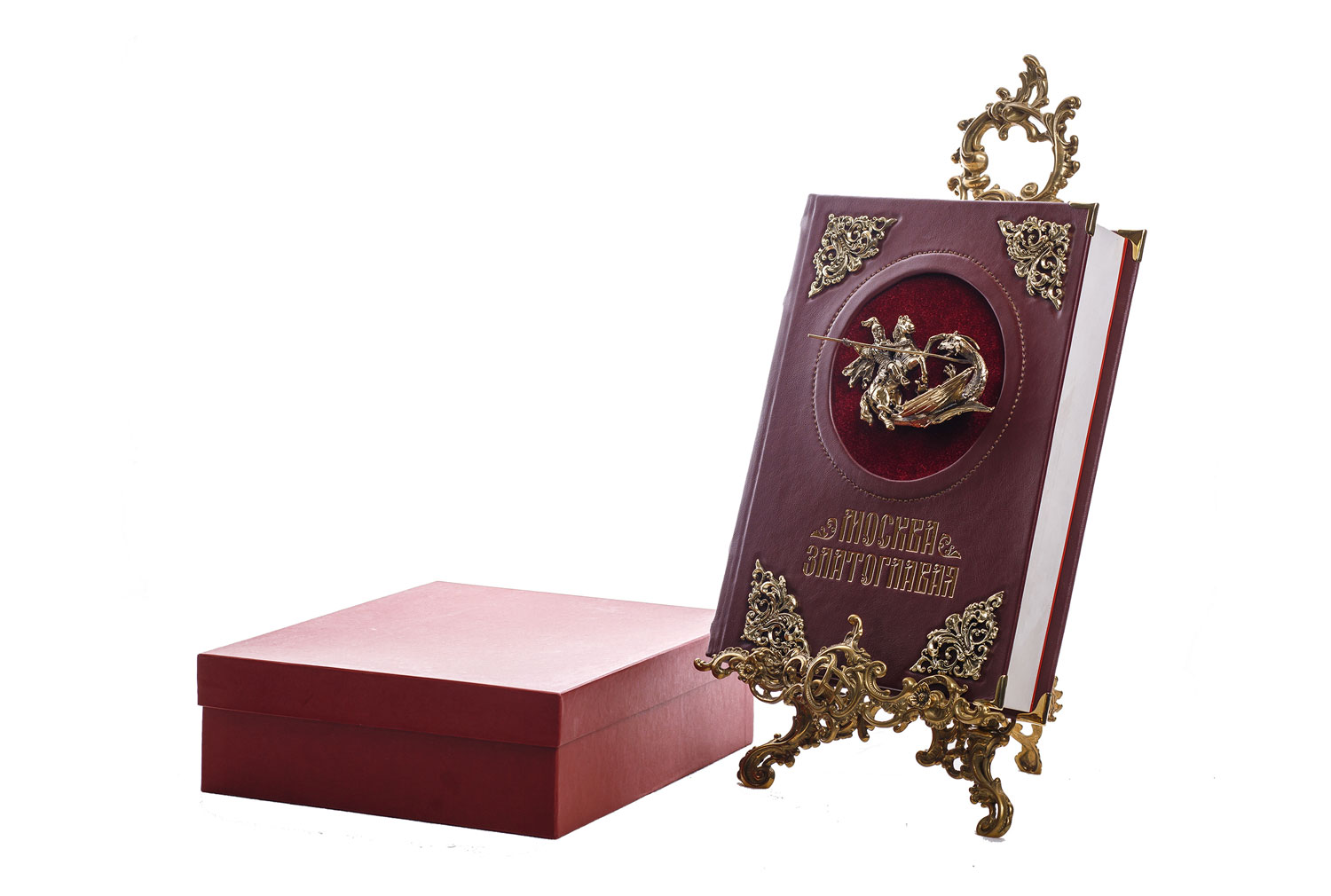 Описание: Сегодня книги – это не что-то необычное, но вот эксклюзивные книги – это настоящее сокровище. Их действительно сложно найти, выбрать и приобрести. Так как многие производители уже давно отказались от идеи реализовать исторические события, то данная книга будет действительно эксклюзивным подарком или покупкой для вас! Книга: Москва златоглавая Страниц: 592 (Мелованная) Размеры: 340x248x53 мм Материалы:  Кожа ибис (Италия), Художественное литье - бронза Комплектация:  книга,  упаковка - дизайнерский картон