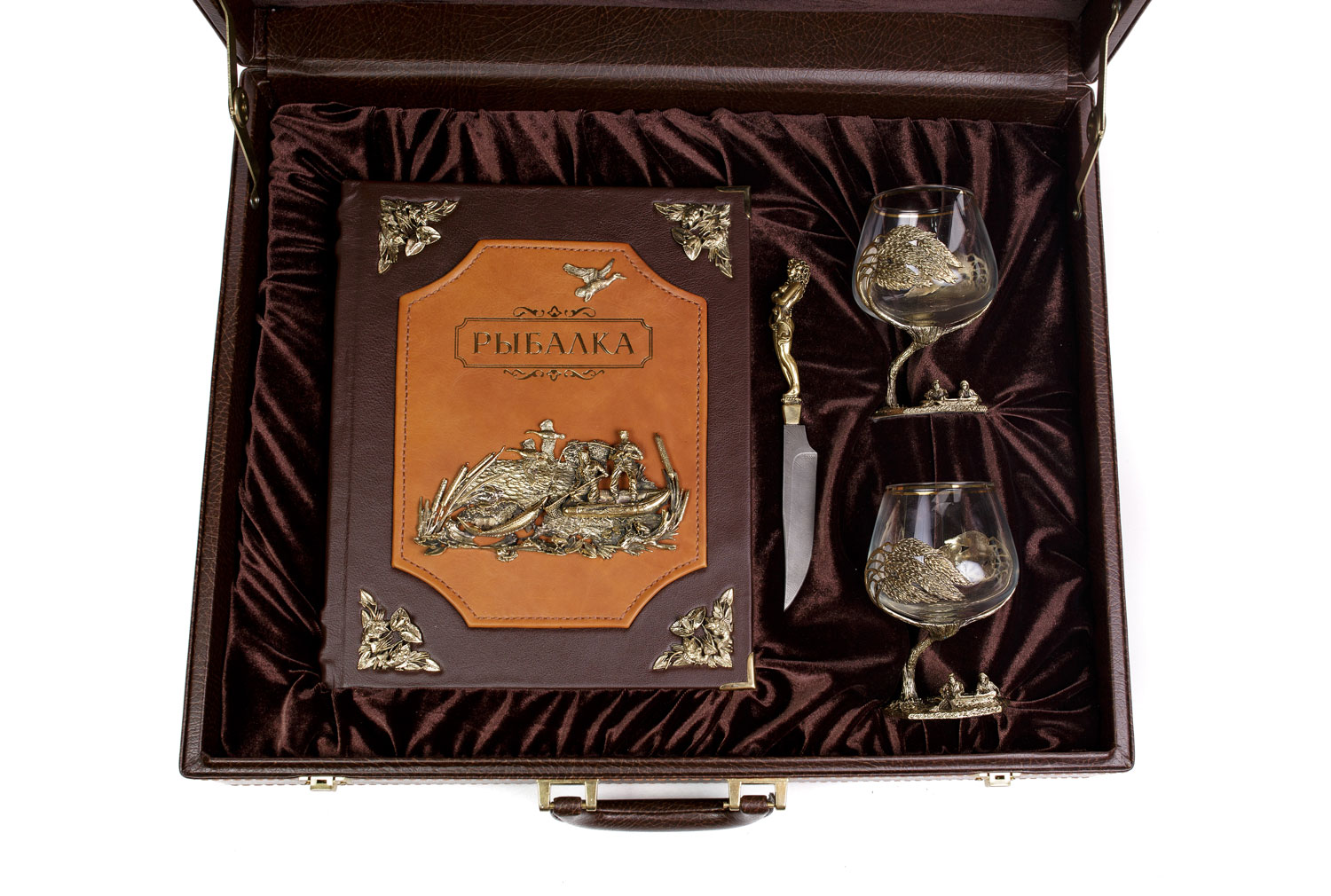 Рыбалка элит в наборе с бокалами для коньяка рыбалка + нож