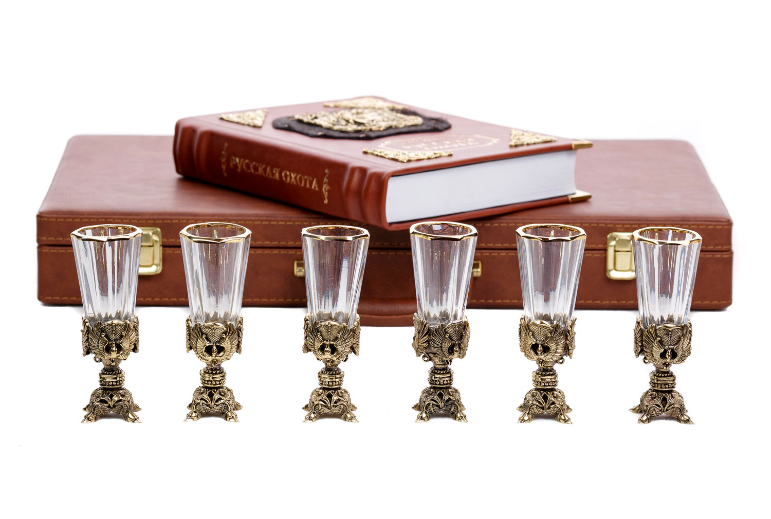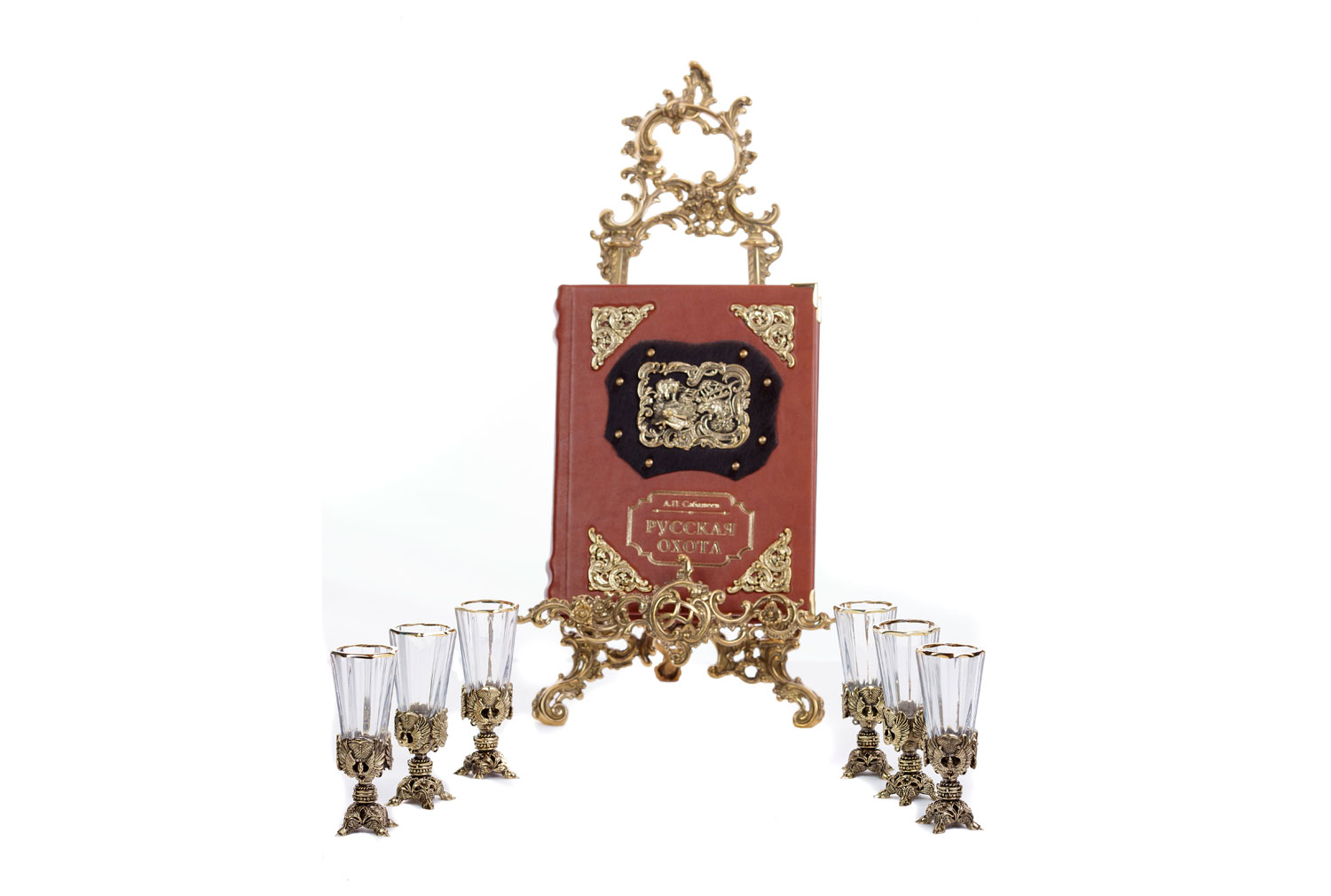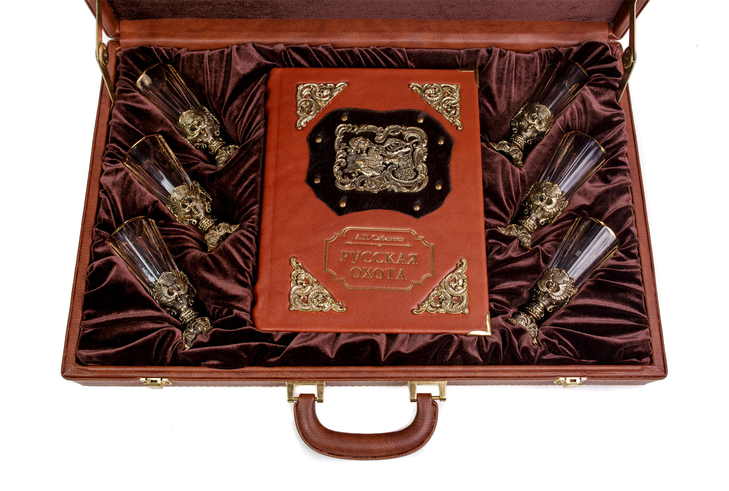 Русская охота л.п. сабанеев в наборе с классическими лафитниками