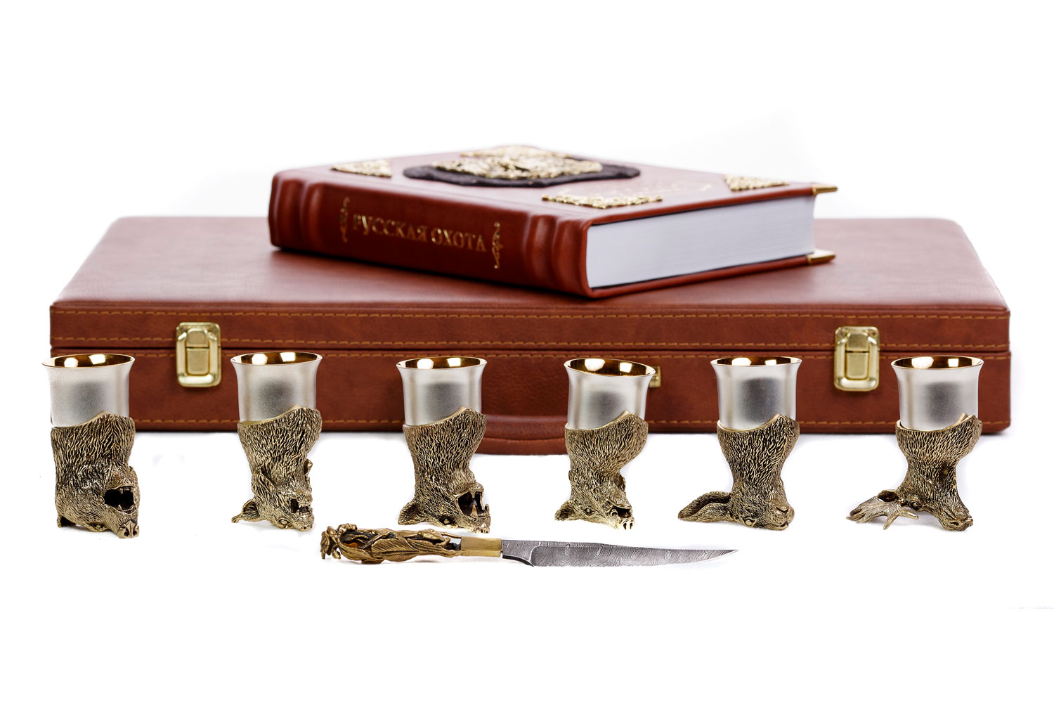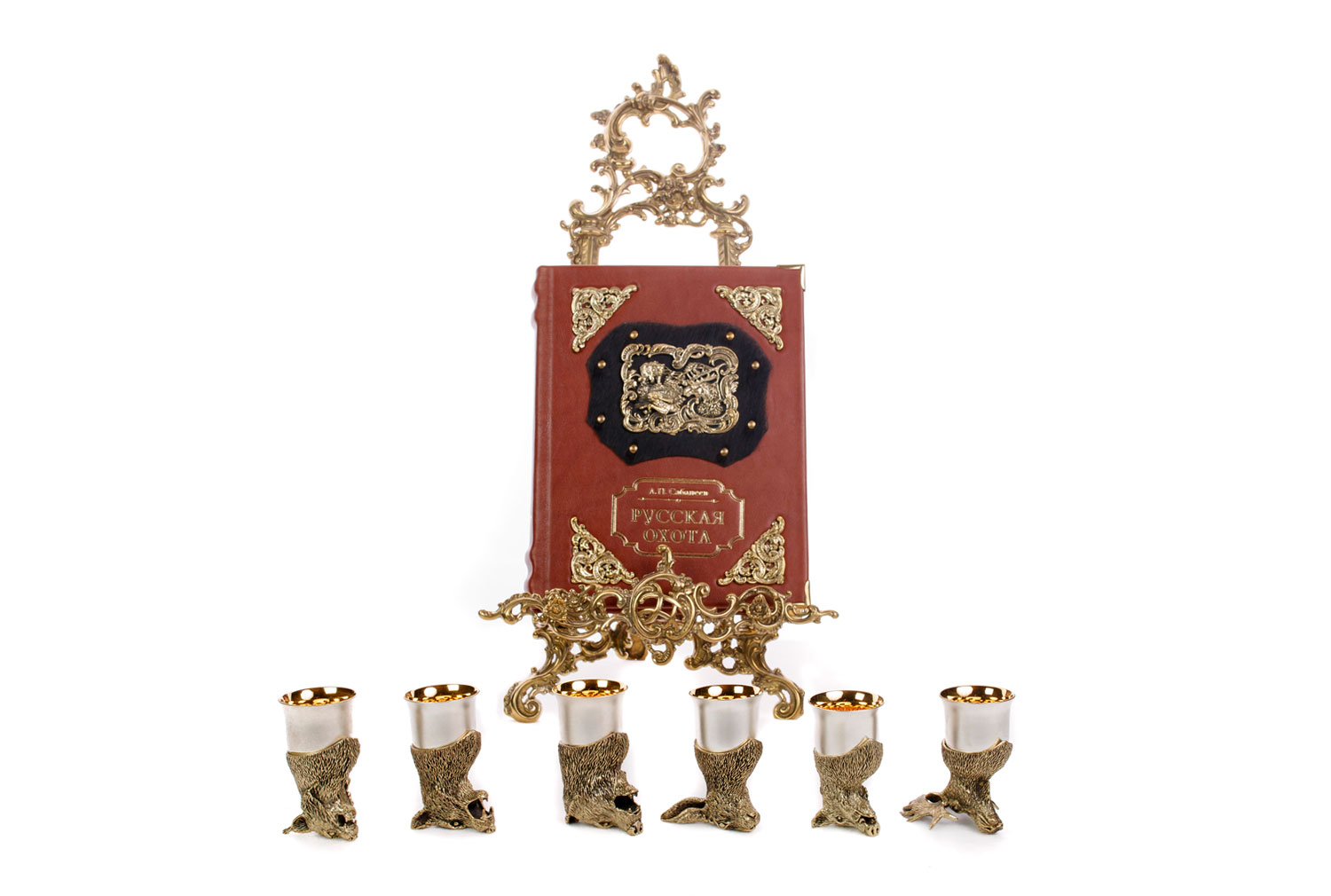 Русская охота л.п. сабанеев в наборе с трофейным набором. Описание: Охота, также, как и рыбалка, регулируются действующим законодательством Российской Федерации. При этом техника безопасности, должна полностью неукоснительно соблюдаться. В данной книге вместе с трофейным набором собраны все секреты русской охоты. Книга:  Леонид Сабанеев: Русская охота Страниц: 800 (Офсет) Размеры: 265x210x42 мм Материалы: Натуральная кожа (Италия), Художественное литье - бронза Комплектация:  книга,  6 стопок-перевертышей Рюмка: Мельхиор, Производитель: Мстерский Ювелир, Страна: Россия, Объем: 50 мл, Покрытие на 1 изделие: Серебра 3,47г, Золота 0,06г Упаковка: кож.зам, ложемент: бархат