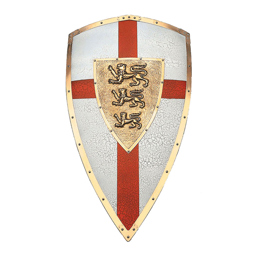 Щит рыцарский - декоративный ричарда львиное сердце. Страна:ИСПАНИЯ Материал:металл с керамическим покрытием, латунь Размер:46х69 см Производство: Art Gladius