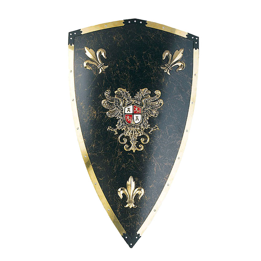 Щит рыцарский - декоративный карла v великого. Страна:ИСПАНИЯ Материал:металл с керамическим покрытием, латунь Размер:46х69 см Производство: Art Gladius