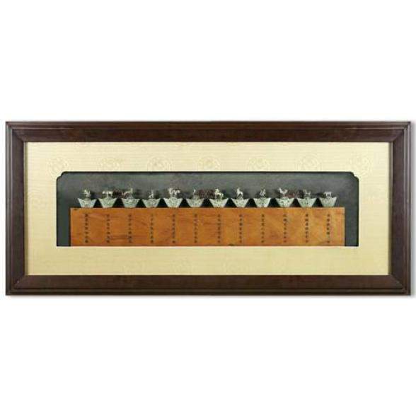 Картина китайские знаки зодиака. Страна:КИТАЙ Материал:дерево, текстиль, стекло, нефрит, металл Размер:35х90 см Производство: Xiamen  развернуть описание ▼