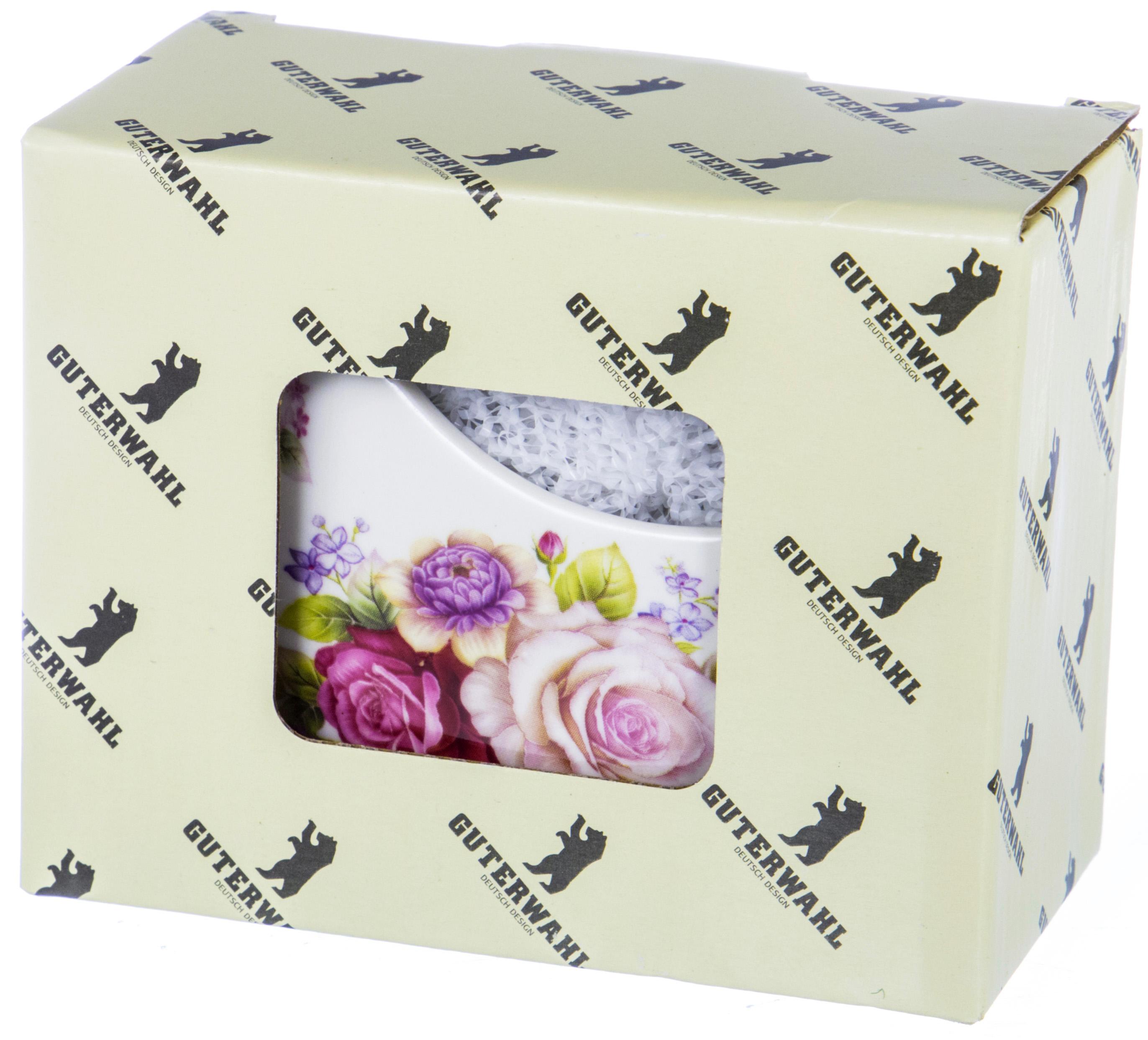 Party time, емкость для жидкого мыла с подставкой под губку, new bone china, цветочный декор, цветная упаковка с окошком