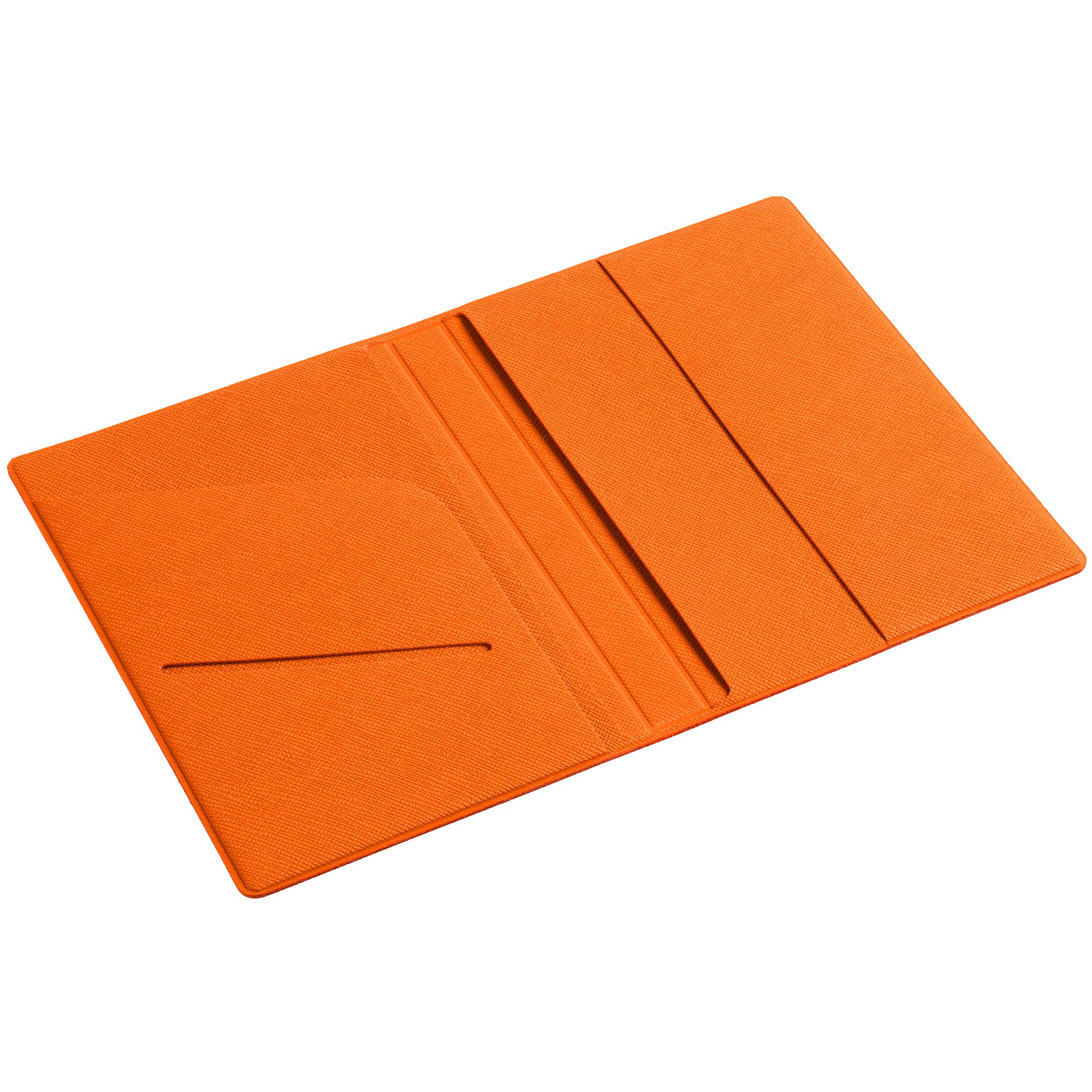 Обложка для паспорта devon, оранжевая. Коллекция Devon Размеры 9,5х13,4 см Материал искусственная кожа Вес (1 шт.) 25,00 г Транспортная упаковка 39,0x39,0x26,0 см Вес 5,00 кг Объем упаковки 0,040 м? Количество в упаковке 200 шт. Виды нанесения T1-Тиснение бесцветное UV-УФ-печать Обложка из искусственного материала, имитирующего сафьяновую кожу, с дополнительными карманами для визиток, полиса ОМС или записок.