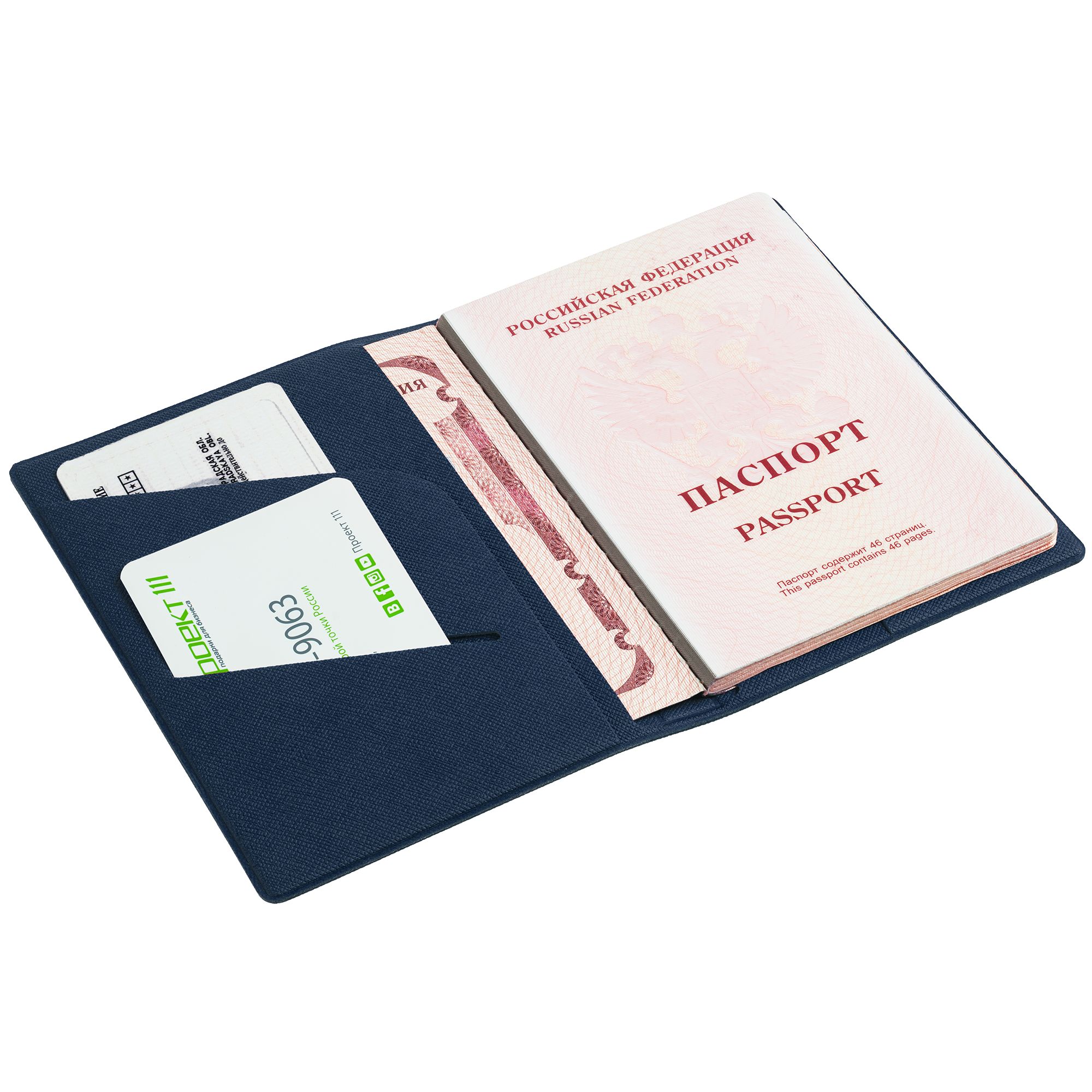 Обложка для паспорта devon, синяя. Коллекция Devon Размеры 9,5х13,4 см Материал искусственная кожа Вес (1 шт.) 20,00 г Транспортная упаковка 39,0x39,0x26,0 см Вес 6,00 кг Объем упаковки 0,040 м? Количество в упаковке 300 шт. Виды нанесения T1-Тиснение бесцветное UV-УФ-печать Обложка из искусственного материала, имитирующего сафьяновую кожу, с дополнительными карманами для визиток, полиса ОМС или записок.