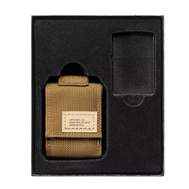 Набор Zippo: чёрная зажигалка Black Crackle® и коричневый нейлоновый чехол