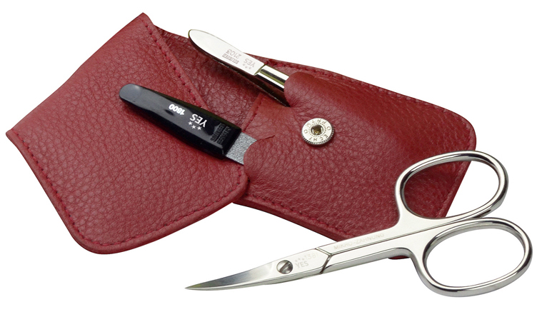 Маникюрный набор Yes, 3 пр. футляр: натуральная кожа, цвет красный
