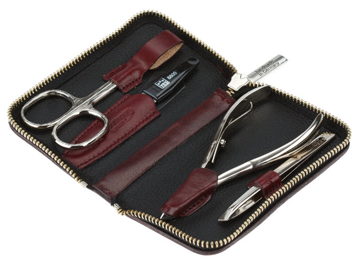 Маникюрный набор Yes, 4 пр. футляр: натуральная кожа, цвет бордово-красный