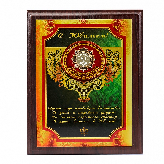 Панно с орденом юбилей 80 лет сублим,зелен.с золотом в картонной коробке