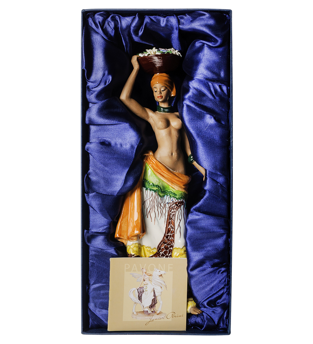 Jp-39/ 5 фигурка африканка (pavone). Параметры товара Материал: Фарфор Страна производства: Китай Страна бренда: Италия Размеры изделия Длина: 14 см; Ширина: 11 см; Высота: 31.5 см; Вес: 0.65 кг. Размеры упаковки Длина: 39 см; Ширина: 14 см; Высота: 15 см; Вес: 1 кг. Размеры короба (8 шт.) Длина: 59 см; Ширина: 40 см; Высота: 31 см;